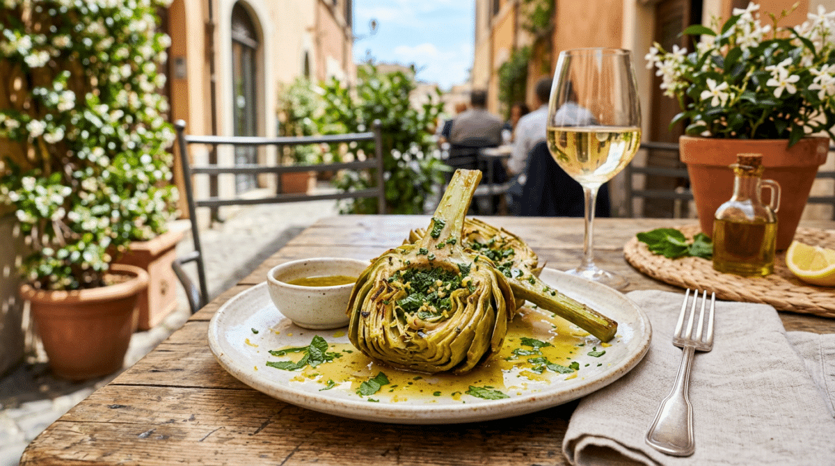 Se vuoi un tocco più romano, prova a sostituire la menta con la mentuccia romana, cambia tutto! Quando sono di fretta, salto i carciofi in padella con aglio e prezzemolo tritati, olio e limone: risultato veloce e leggero, perfetto come contorno. Per accompagnare, un bianco fresco come il Frascati è la scelta migliore, soprattutto se stai organizzando una cena all’aperto con amici o famiglia, la primavera si sente tutta in quel bicchiere.